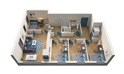 Auden Buffalo has studio to four bedrooms with rent ranges from $599/mo. to $1549/mo.