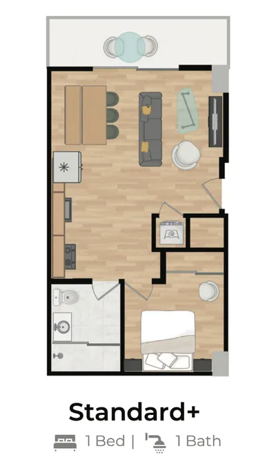 TENTEN Downtown has studio to two bedrooms with rent ranges from $3401/mo. to $6514/mo.