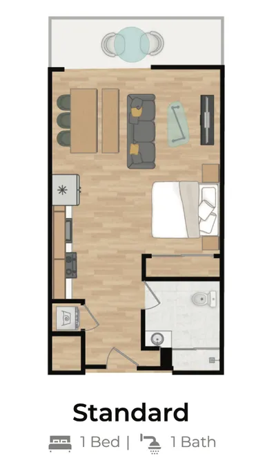 Love the modern layout designs and that all utilities are covered in the rent. The unit windows are tinted and soundproof which is essential when working from home in a busy city. The rooftop is also a hidden gem in DTLA for tenants! It feels like a private resort due to being a large garden as well as the pools, gym, and even dog park.