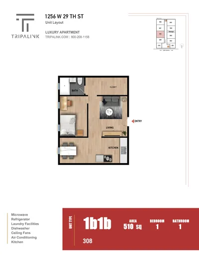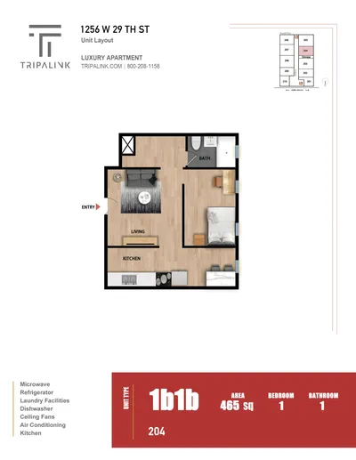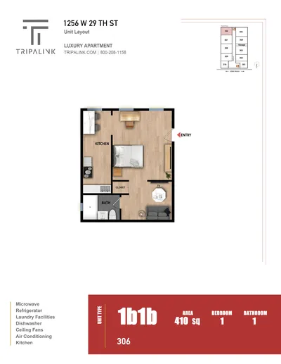1256 W 29th St has studio to one bedrooms with rent ranges from $1908/mo. to $2148/mo.