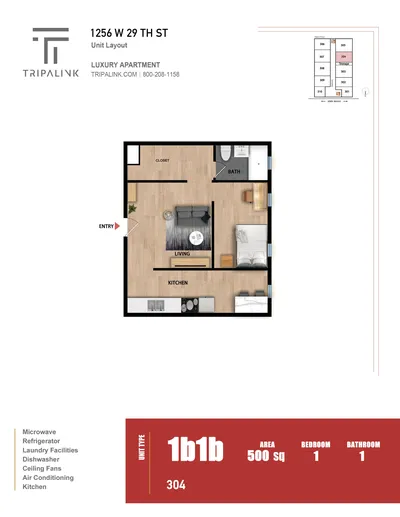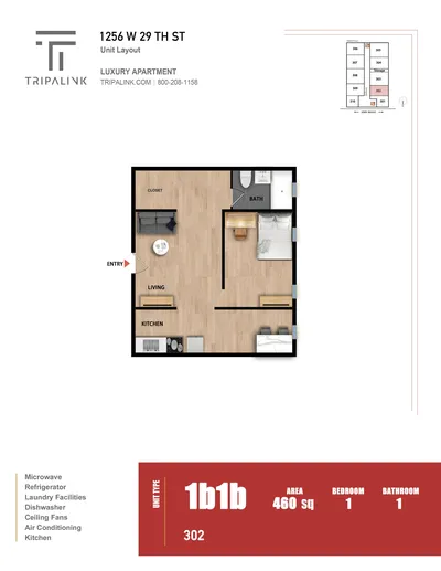 1256 W 29th St has studio to one bedrooms with rent ranges from $1948/mo. to $2128/mo.