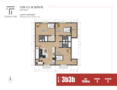 1337 W 36th Pl has three bedrooms with rent ranges from $1415/mo. to $5153/mo.