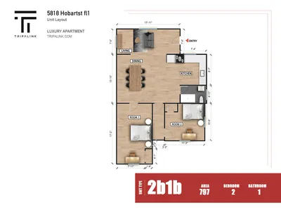 5818 Hobart St has two bedrooms with rent ranges $2000/mo.