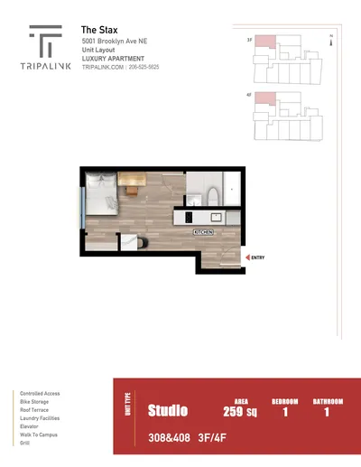 The Stax se encuentra en 5001 Brooklyn Ave NE, Seattle, WA 98105.