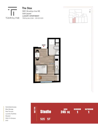 The Stax se encuentra en 5001 Brooklyn Ave NE, Seattle, WA 98105.
